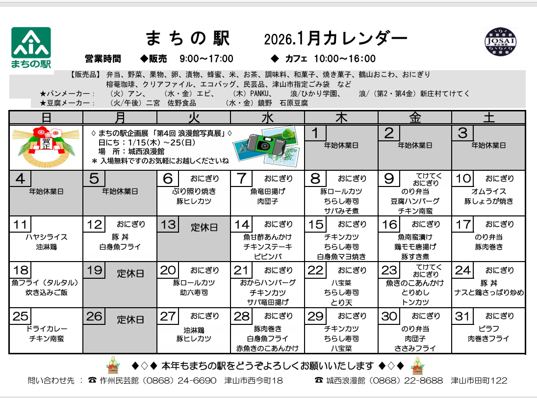 まちの駅 2026年1月カレンダー