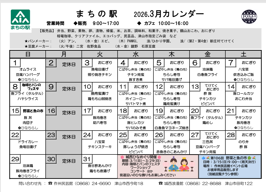 まちの駅 3月カレンダー